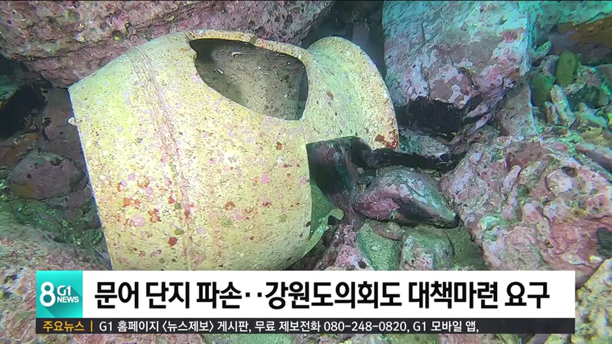 대문어 서식 산란을 위해 동해 묵호 앞바다에 설치한 문어 단지가 대부분 파손됐다는 G1 보도와 관련해 강원도의회도 강원도에 대책 마련을 요구했습니다.