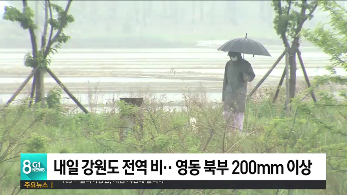 내일 강원도 20mm 이상 비..영동 북부 200mm 이상