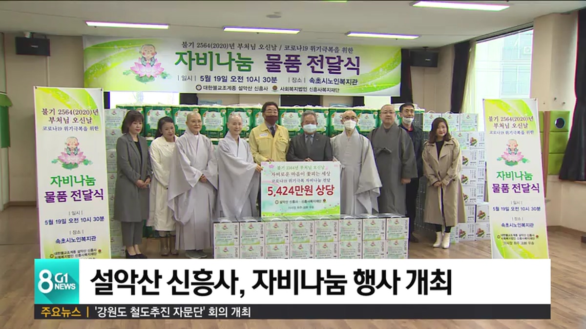 설악산 신흥사에서 부처님 오신 날을 기념해 코로나19로 어려움을 겪는 이웃들을 위한 자비나눔 행사를 열었습니다.