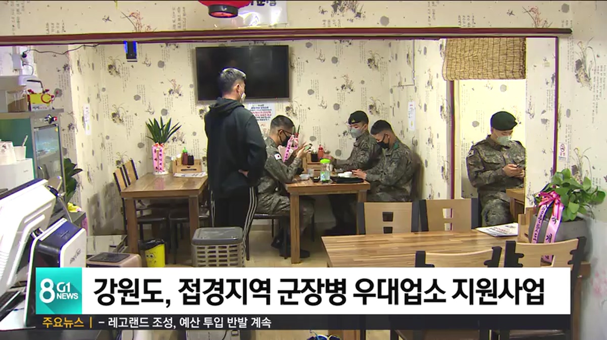 강원도는 올해 예산 60억 여원을 투입해, 접경지역 내 군장병 우대업소 이용금액의 일부를 지역상품권으로 환급해주는 지원사업을 벌입니다.