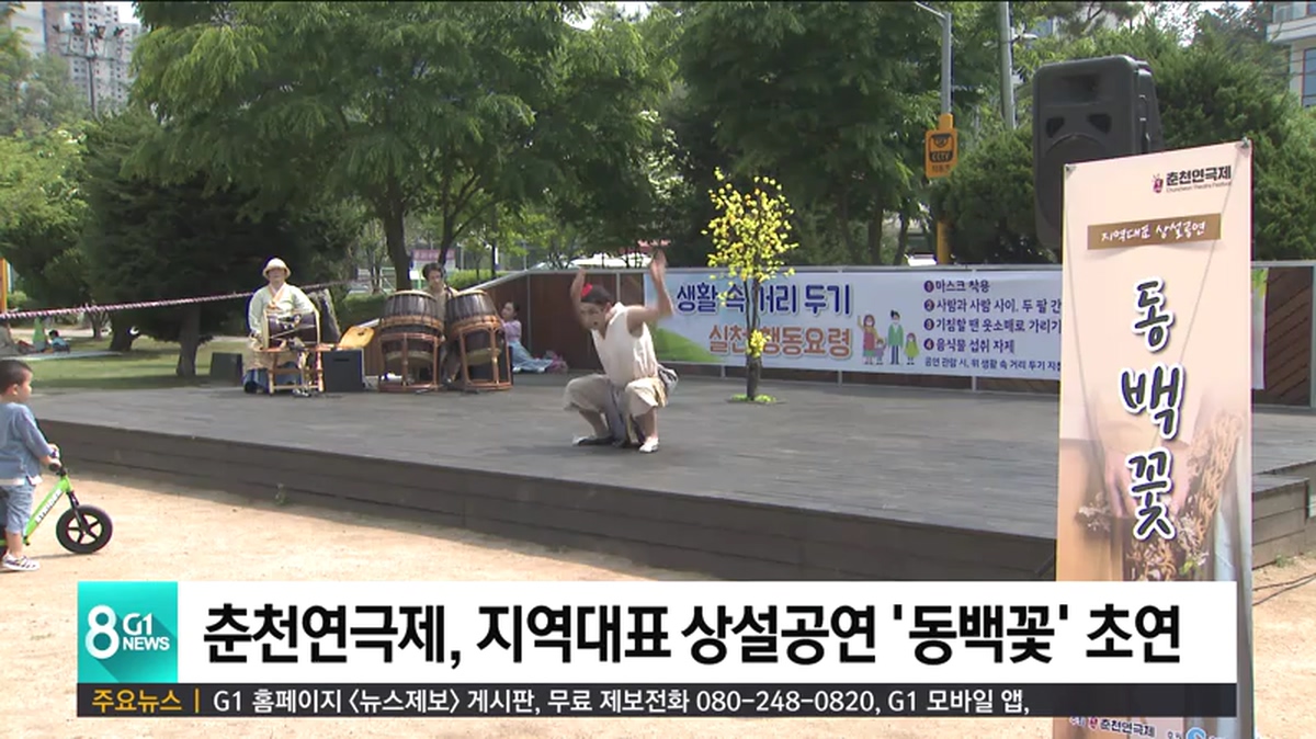코로나 19 속 사회적 거리두기가 완화된 가운데, 춘천연극제가 오늘(23일) 춘천 공지천 야외 무대에서 지역 대표 상설공연인 '동백꽃'을 초연했습니다.