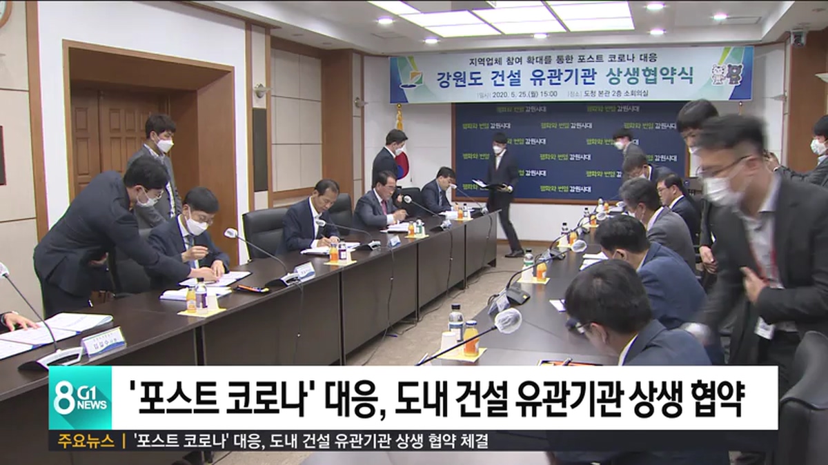 강원도와 원주지방국토관리청 등 8개 유관기관과 강원건설단체연합회가 '포스트 코로나19 대응 협약'을 체결하고 코로나 극복을 위한 본격적인 대책 마련에 들어갔습니다.