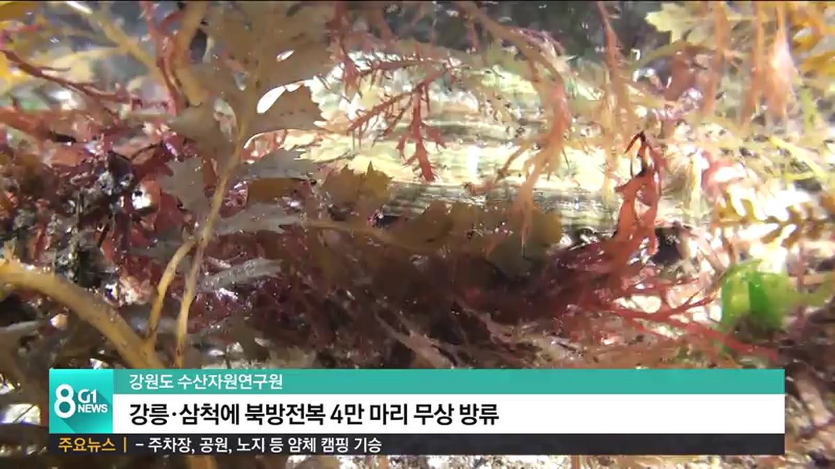 강원도 수산자원연구원이 오늘(26일) 강릉 소돌과 삼척 갈남 지역에 북방전복 종자 4만마리를 무상방류했습니다.