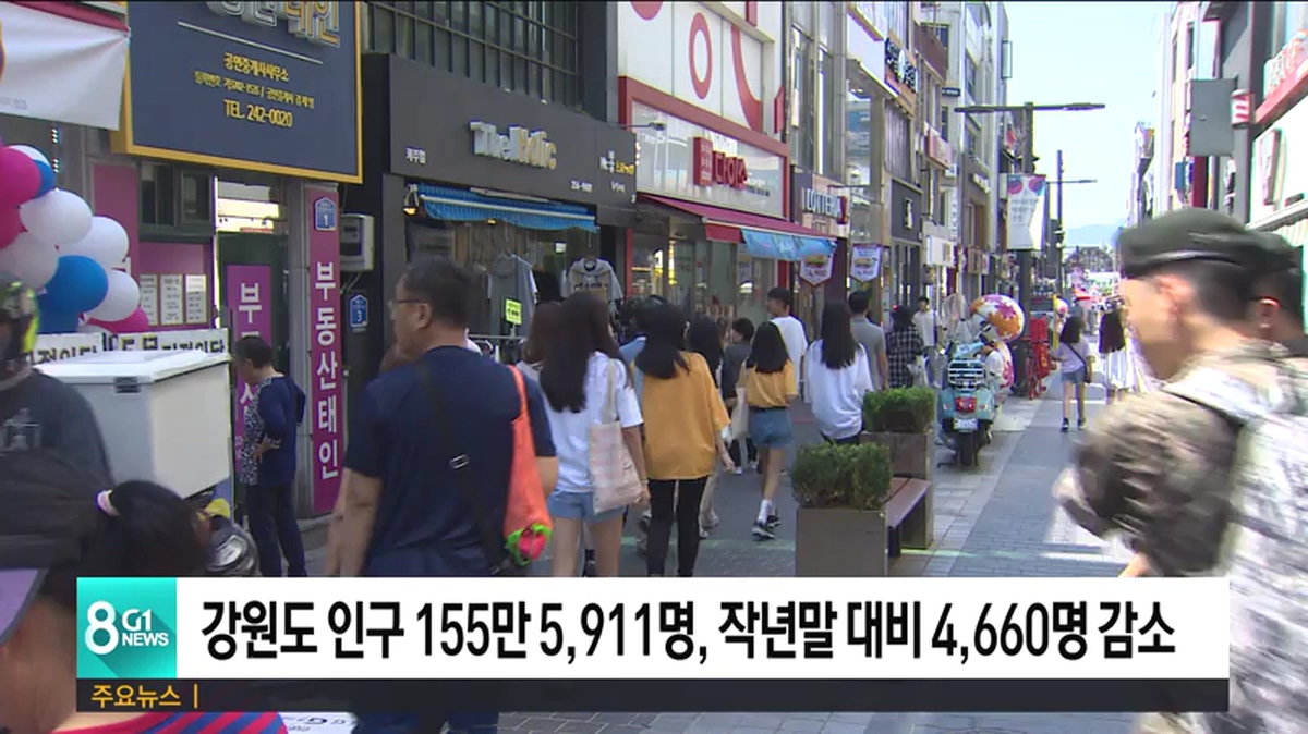 지난달 말 기준 내·외국인을 포함한 강원도 인구는 지난해 말에 비해 4천 660명이 줄어든 155만 5천 911명으로 조사됐습니다.
