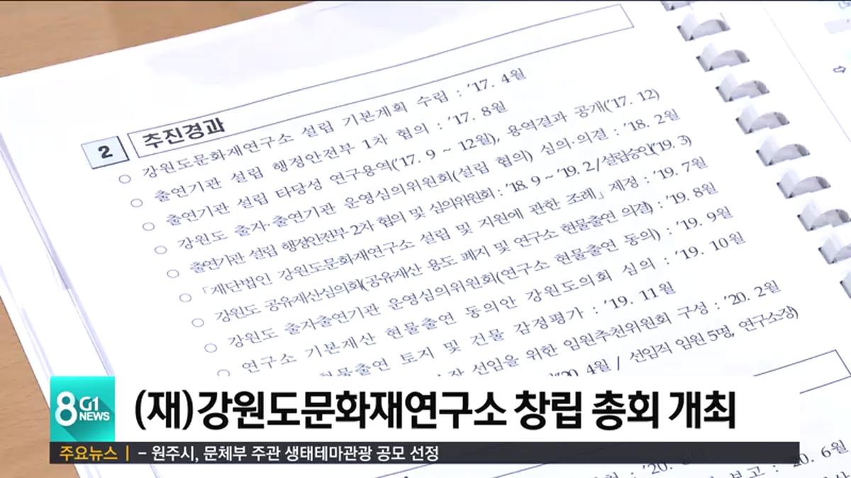지난 2001년 강원문화재단 부설로 설립된 강원도 문화재연구소는 이번 창립 총회를 통해 독립 법인 허가와 설립 등기 등을 마치고 오는 7월 공식 출범할 예정입니다.