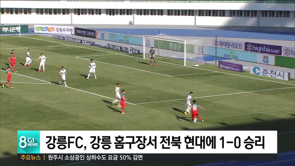 강원 FC는 오늘 강릉 종합운동장에서 열린 '하나원큐 K리그 2020' 전북 현대와의 홈경기에서 1대 0으로 승리하며 리그 상위권으로 도약했습니다.