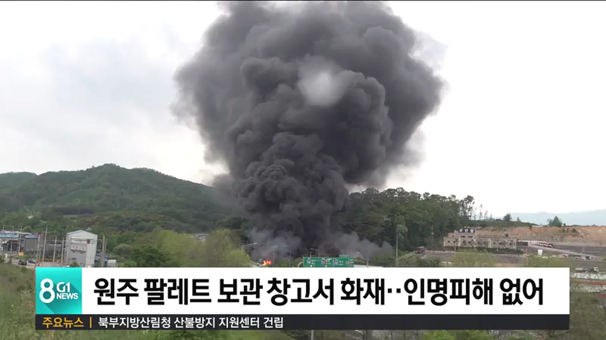 원주 팔레트 보관 창고서 화재..인명피해 없어