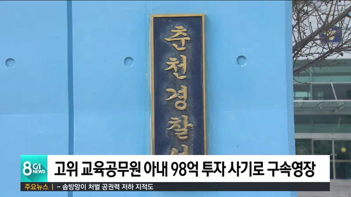 경찰이 90억 원 대 투자 사기 의혹을 받고 있던 춘천의 전직 고위 교육공무원의 아내 정 모 씨에 대해 구속영장을 신청했습니다.