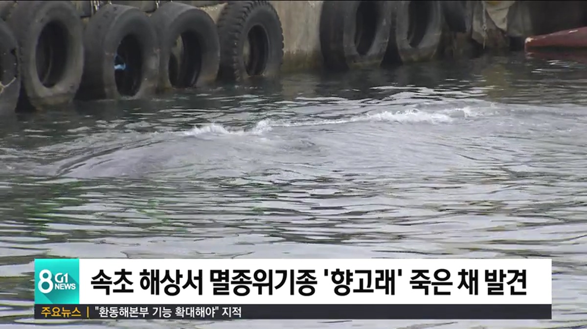 어제 오후 7시 반쯤 속초시 대포 앞바다에서 멸종위기종인 향고래가 죽어있는 것을 조업하던 어선이 발견해 해경에 신고했습니다.