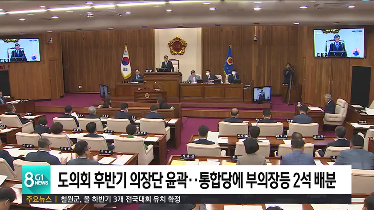 강원도의회 다수당인 더불어민주당이 후반기에도 미래통합당에 부의장과 상임위원장 1석씩, 2석을 배분하기로 결정했습니다.