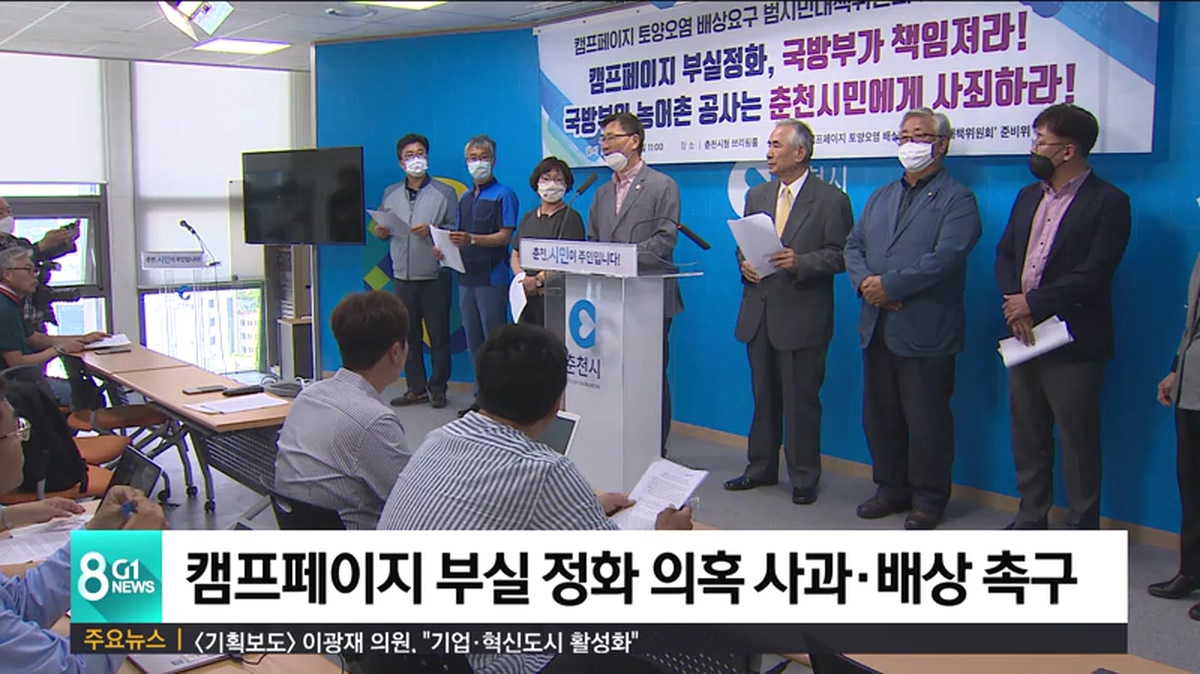 캠프페이지 부실 정화에 대해 국방부와 한국농어촌공사는 분명히 사과하고, 완전한 오염제거를 위한 비용 전부를 춘천시에 배상할 것을 촉구했습니다.