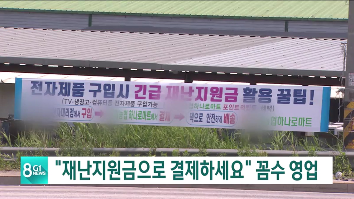 정부가 재난지원금 효과를 극대화하기 위해 엄격하게 사용 업종을 제한하자 꼼수 영업이 등장했습니다. 대형 가전제품 매장에 농협하나로마트 결제 단말기를 설치해 업종 제한을 피하고 있습니다.