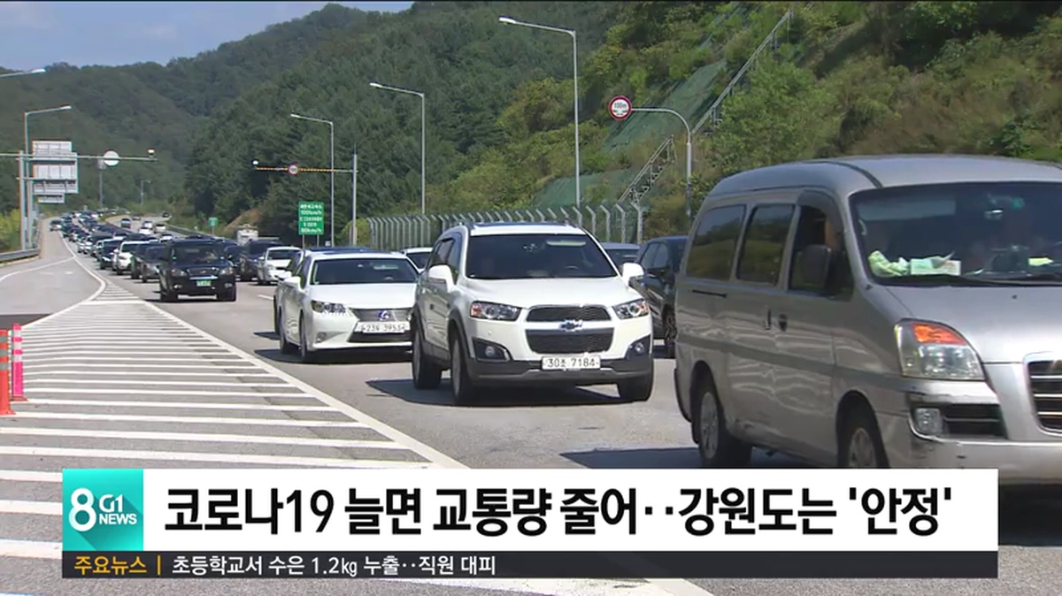 코로나19 늘면 교통량 줄어..강원도는 '안정'