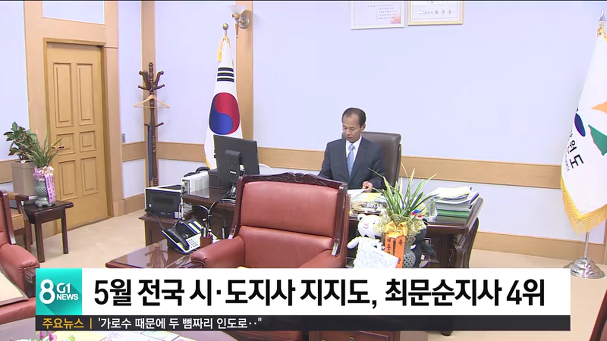 최문순지사의 지지도는 전월보다 4.6%p 오른 60.5%로, 전국 시·도지사 가운데 전남 김영록, 경기 이재명, 서울 박원순 시장에 이어 4위를 기록했습니다.