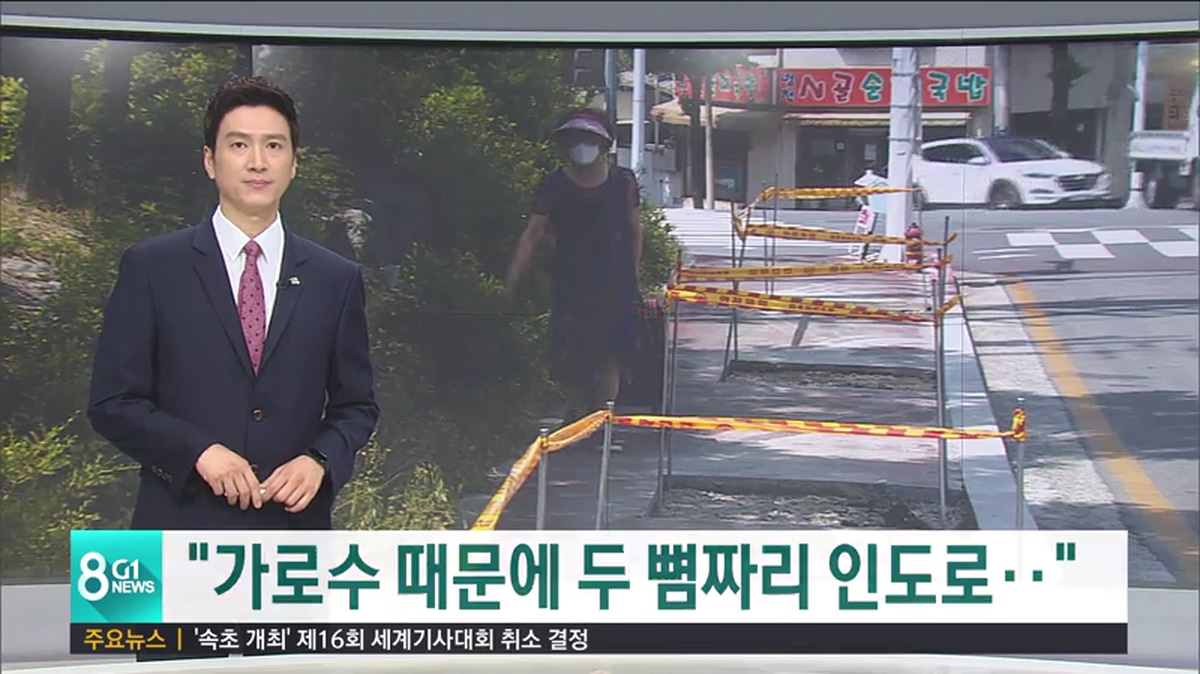"보완하기 위해선 가로수 발판을 설치할 예정이구요. 이후엔 가로수를 심을때 보도 폭을 충분히 확보한 뒤에 우선적으로 심을 계획입니다."