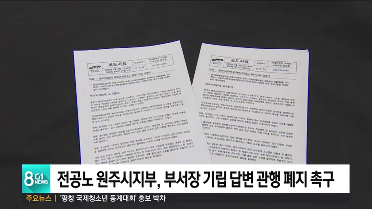 전국공무원노조 원주시지부는 행정사무감사를 앞두고 시의회에 부서장이 일어서서 답변하는 관행 등을 없애야 한다고 요구했습니다.