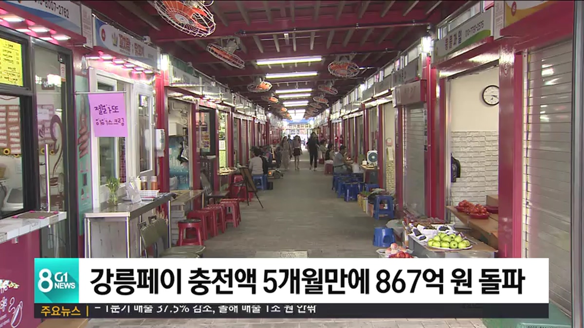 강릉페이 충전액이 출시 5개월만에 867억원을 돌파했습니다.