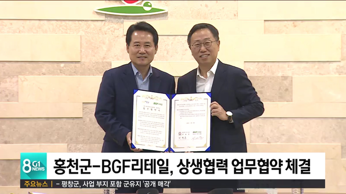 홍천군이 지역 농특산물을 널리 알리고 안정적인 판로를 확보하기 위해 국내 대표 편의점 프랜차이즈 업체인 BGF리테일과 업무협약을 맺었습니다.