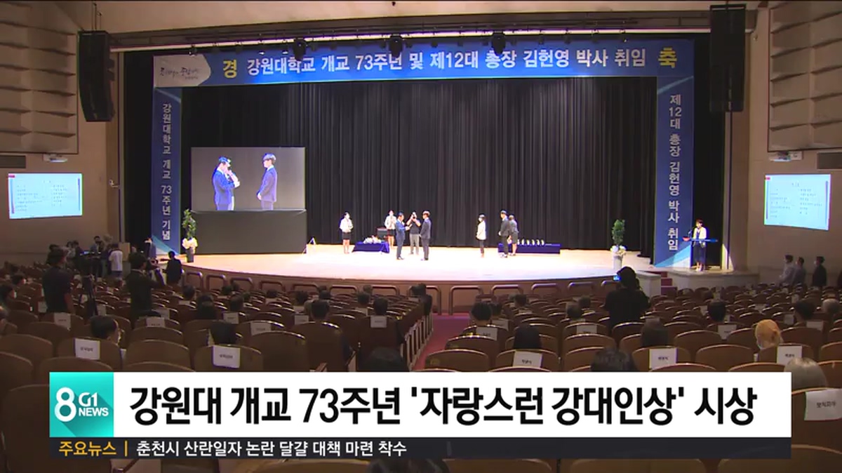 강원대학교가 개교 73주년을 맞아 기념식을 열고, 대학의 명예를 빛낸 동문 4명에게 '자랑스런 강대인상'을 수여했습니다.