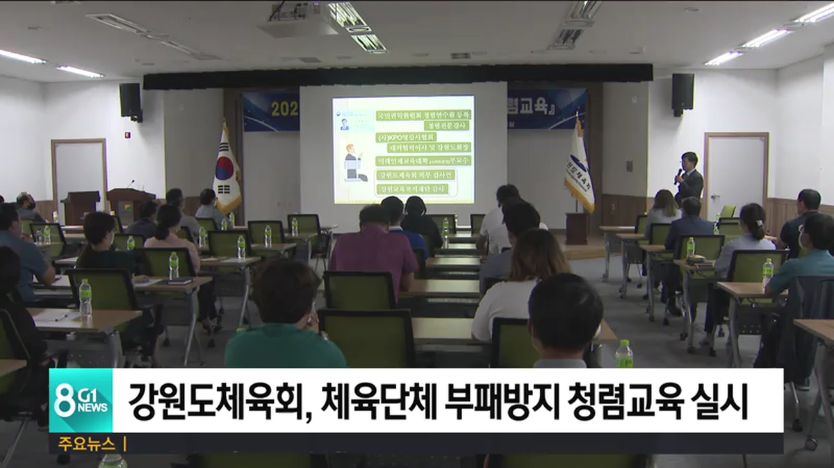 강원도 체육회가 도내 체육단체의 부패와 비리를 근절하기 위해 오늘 도체육회관 대회의실에서 청렴 교육을 진행했습니다.