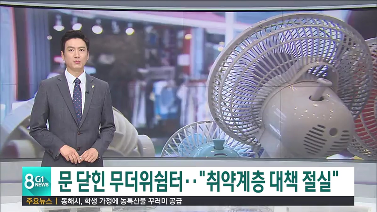 "경로당이나 주민센터 등 도내 무더위쉼터 10 곳 중 8곳은 폐쇄됐습니다. 더위를 피할 곳이 없어진 노인들은 거리로 나왔습니다."