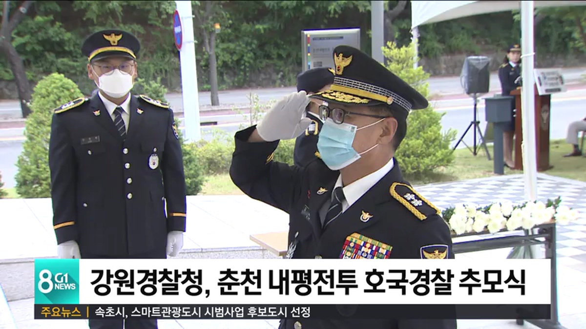 김재규 청장을 비롯한 강원경찰청 직원과 경찰 유족들은 오늘 춘천 내평전투 호국경찰 추모상을 찾아 한국전쟁 당시 조국을 지키다 순국한 경찰의 넋을 기렸습니다.