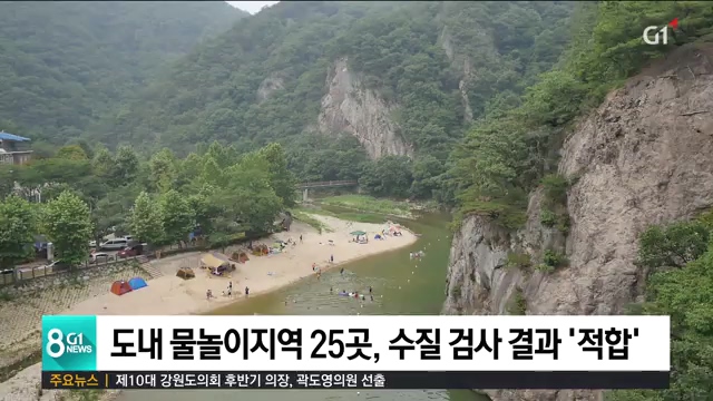 강원도보건환경연구원은 원주 간현관광지와 동해 무릉계곡, 삼척 덕풍계곡 등 25곳의 물놀이 지역 수질 검사를 벌인 결과 대장균과 레지오넬라균 등이 권고 기준보다 낮았다고 밝혔습니다.
