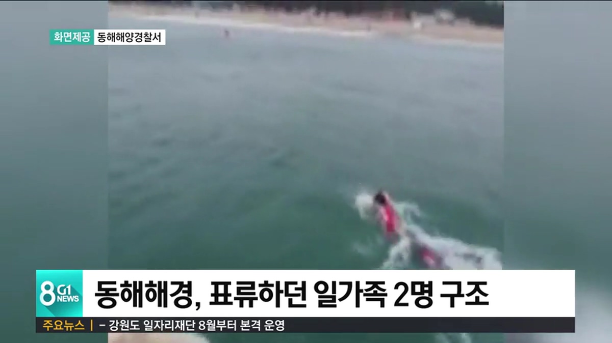 오늘 낮 12시 반쯤, 삼척 맹방해수욕장에서 튜브를 타고 물놀이를 즐기던 일가족 두 명이 바다 바깥쪽으로 떠밀려가는 사고가 발생했습니다.