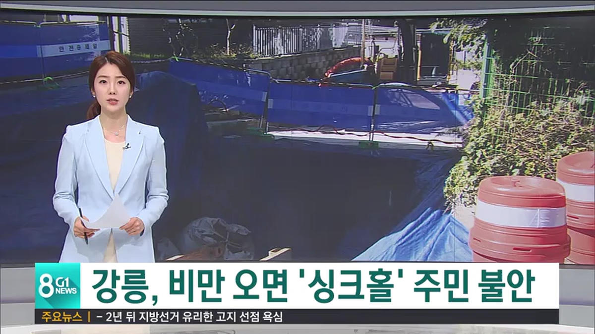 강릉시의회는 지난 5월 잇따르는 땅꺼짐 문제가 노후 하수관로의 문제만은 아니라면서 강릉시에 보다 적극적은 대처를 요구한 바 있습니다. G1뉴스 신건입니다.