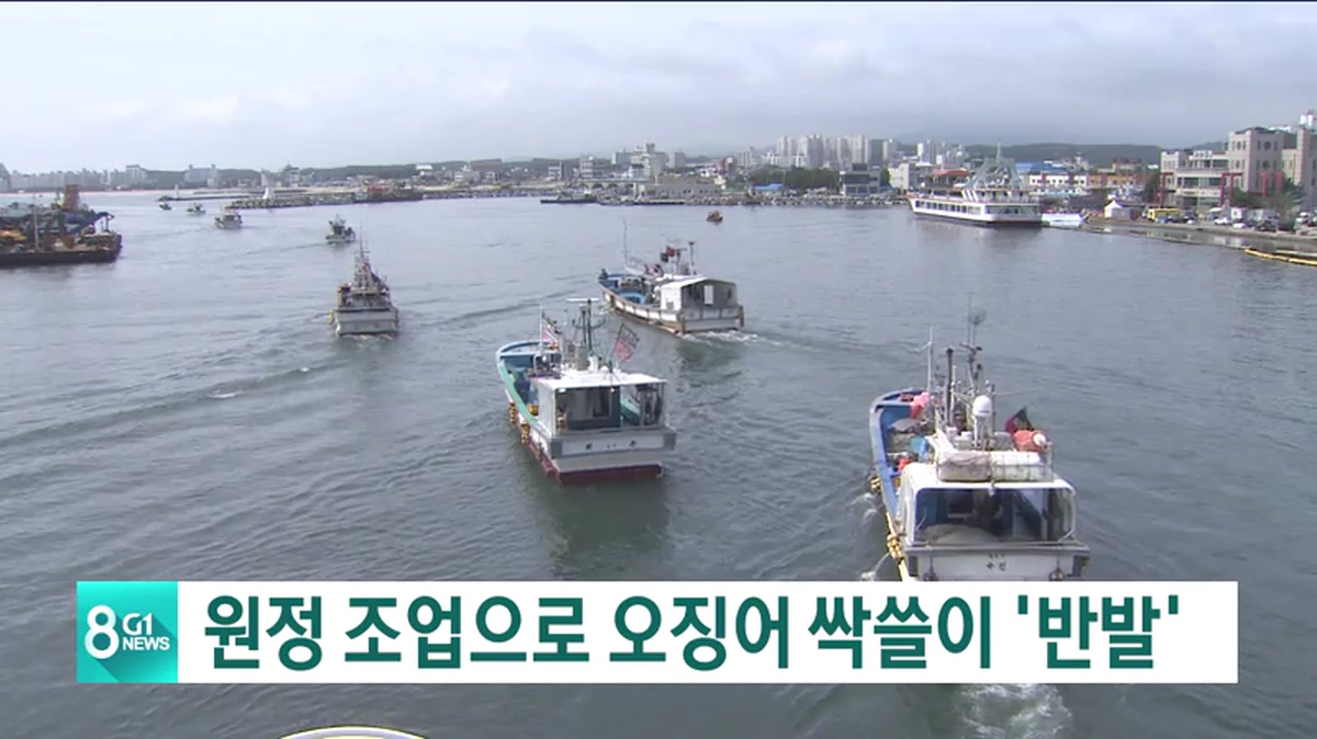 남해안 대형 어선들이 동해안에서 오징어 원정 조업을 벌이고 있습니다. 동해안 어선에 비해 규모와 어획 강도가 워낙 커서 도내 어민들은 씨를 말리겠다면서 강하게 반발하고 있습니다.