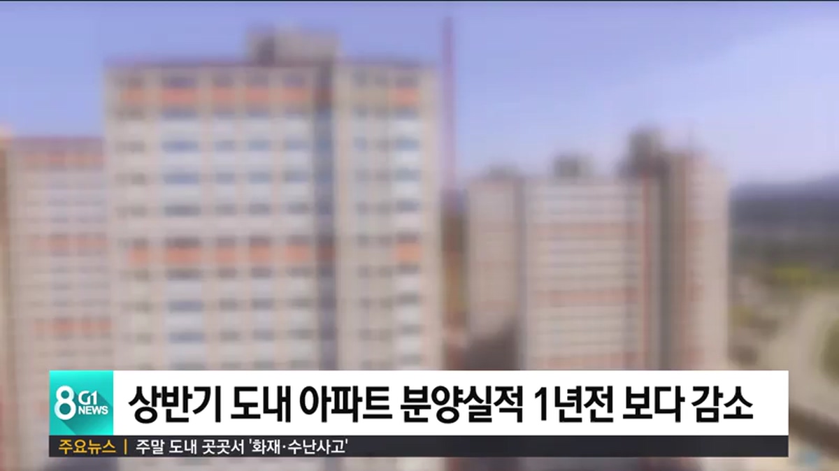 올해 상반기 도내 아파트 분양실적이 1년전 보다 떨어진 것으로 집계됐습니다.