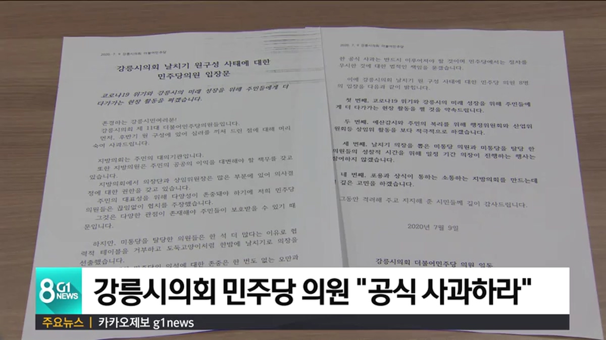 강릉시의회 민주당 의원 "공식 사과하라"