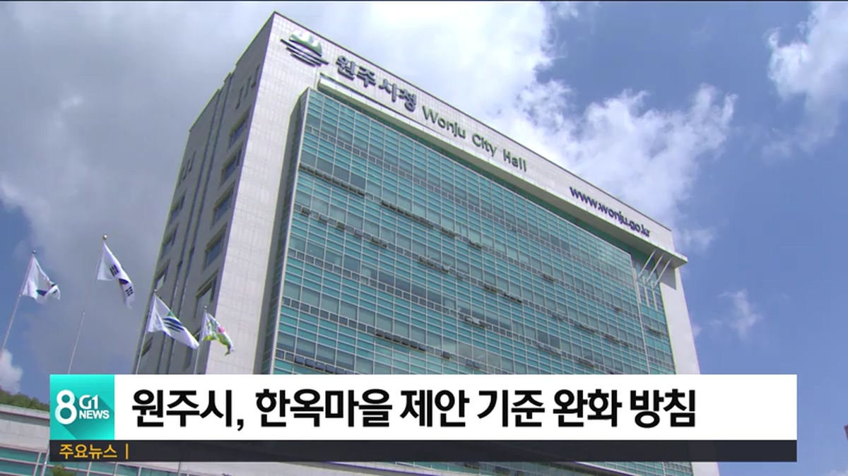 원주시는 당초 한옥 형태의 건축이 가능한 부지 3만 3천㎡ 이상에서 3만㎡ 이상으로 기준을 완화하고, 토지 소유권이나 사용권 확보 조건도 100%에서 50%로 줄이겠다고 설명했습니다.