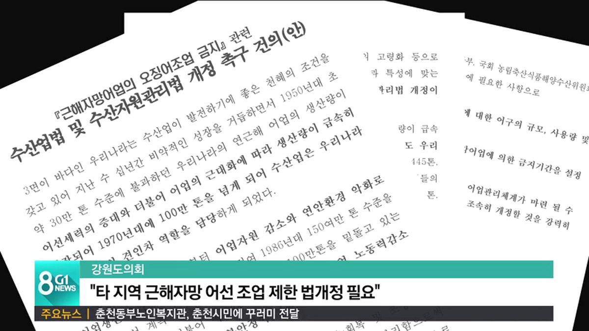 또 지역과 해역별 특성을 고려해 어구의 규모와 사용량, 금지 구역과 기간을 제한할 수 있도록 관련법을 조속히 개정하라고 촉구했습니다.
