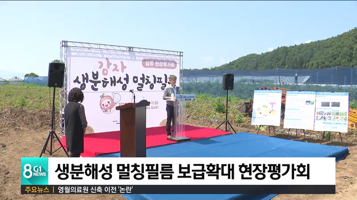 강원도농업기술원은 오늘 춘천시 서면 감자 실증시험포에서 생분해성 멀칭필름 현장 평가회를 열고, 실제 사용한 농가의 평가를 통해 환경 오염 저감과 노동력 절감 효과를 논의했습니다.