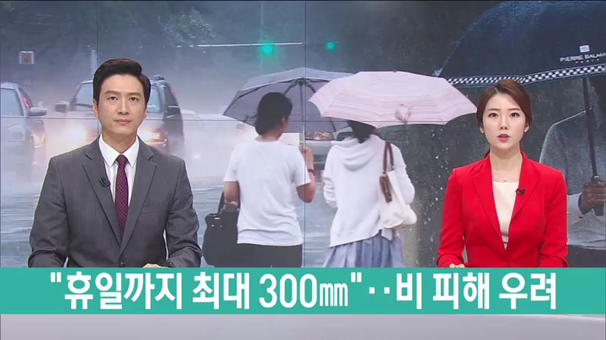 여) 밤부터 비가 다시 시작되서 주말과 휴일 내내 비가 올텐데, 특히 영동엔 최고 300mm 집중 호우가 예상됩니다.