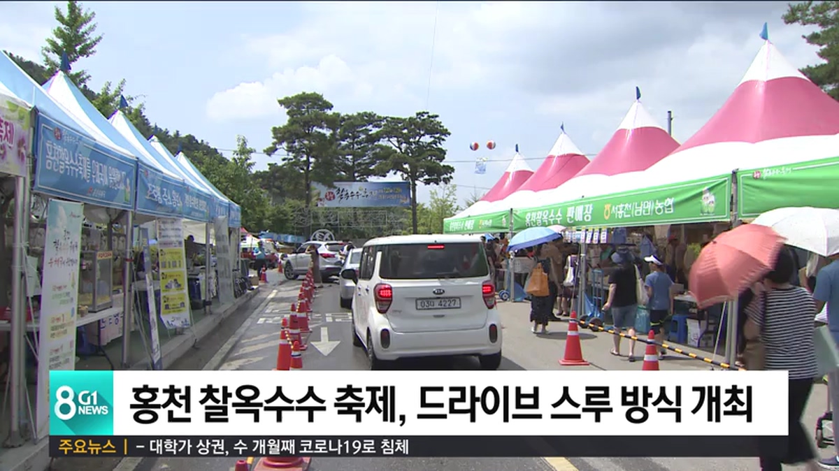홍천군은 올해 홍천찰옥수수축제는 코로나19를 고려해, 오는 31일부터 다음달 2일까지 사흘간 홍천읍 늘푸름한우프라자에서 드라이브 스루 방식으로 개최한다고 밝혔습니다.