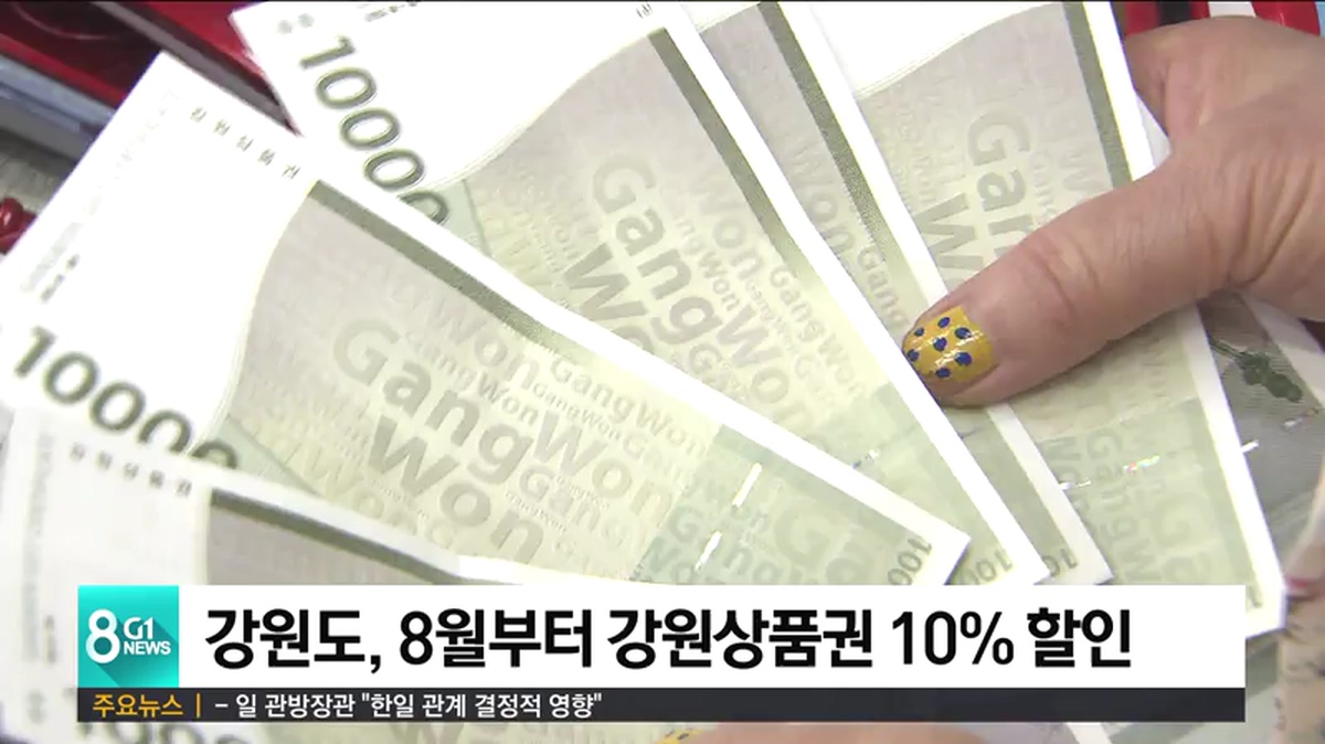 강원도는 코로나 19로 침체된 경기를 살리기 위해 다음달(8월)부터 12월까지 강원상품권을 10% 할인해주기로 했습니다.