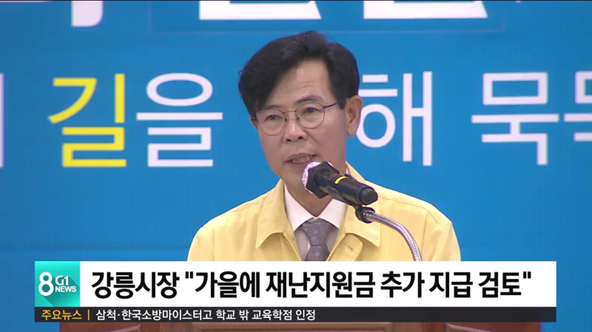 김한근 강릉시장이 오늘 취임 2주년 기념 기자회견을 열고, 코로나 재확산 우려가 있는 가을에 재난지원금을 추가 지급하는 방안에 대해 고민하고 있다고 밝혔습니다.