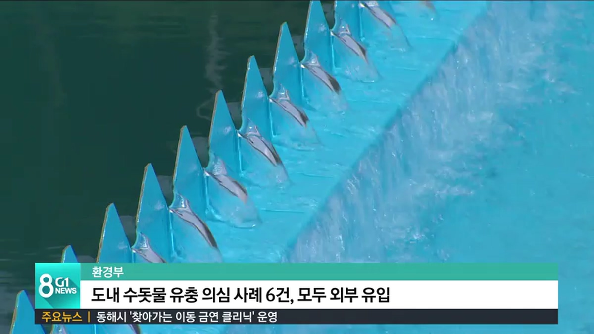 환경부는 지난 23일부터 일주일간 전국 수돗물 유충 발생 민원이 도내 6건을 포함해 모두 2,318건 접수됐다고 밝혔습니다.