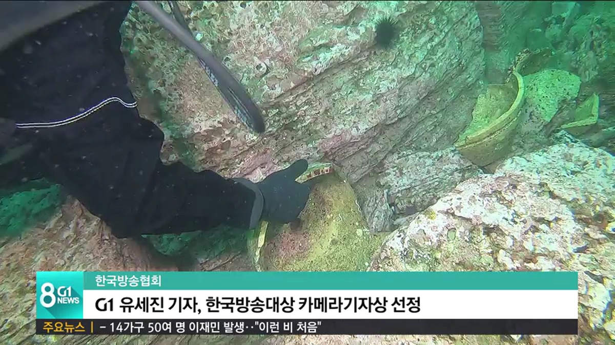 한국방송협회는 G1 강원민방 유세진 기자가 수중 촬영을 통해 동해안 대문어 서식 산란장의 문제점을 고발하는 등 활발한 영상 취재 활동으로 다양한 뉴스를 제작, 보도해 제 47회 한국방송대상 카메라기자상 수상자로 선정했다고 밝혔습니다.