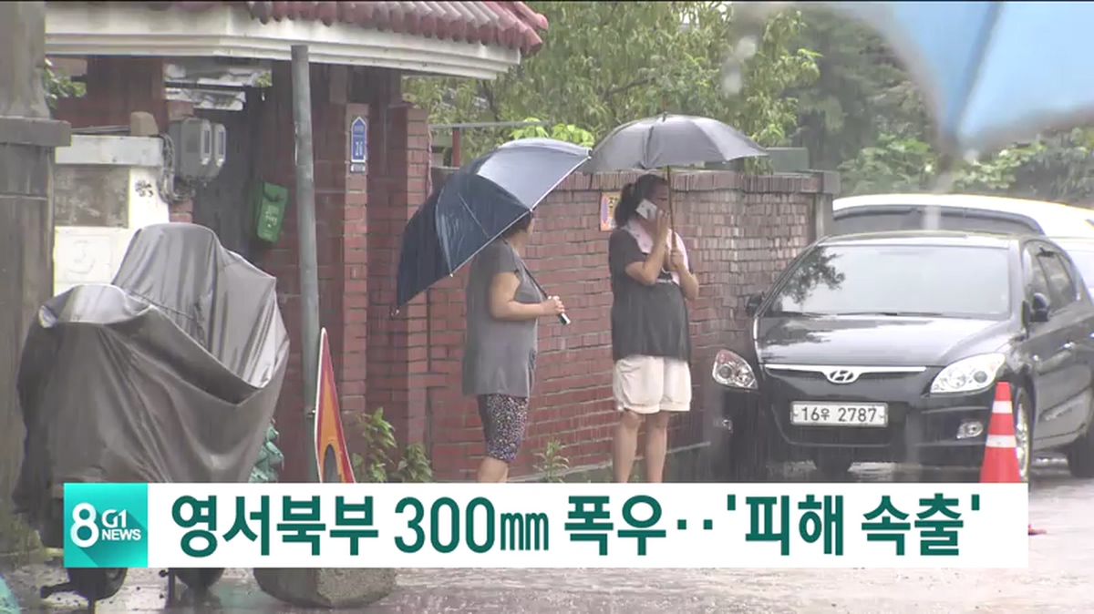 도내 영서 북부 지역을 중심으로 300mm가 넘는 폭우가 쏟아지면서 피해가 잇따르고 있습니다. 모레까지 500mm가 더 내린다는 예보입니다.