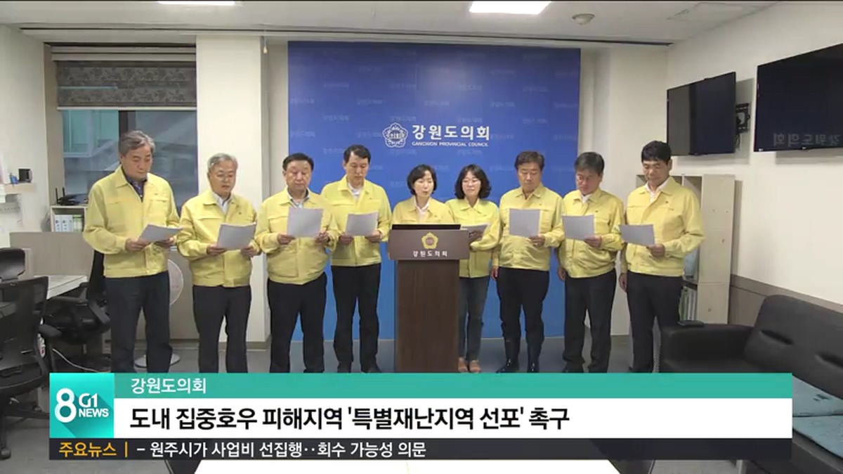 강원도의회는 긴급대책회의를 열고, 집중호우로 피해를 입은 도내 지역에 대해 '특별재난지역'으로 지정해 줄 것을 정부에 촉구하는 성명서를 발표했습니다.