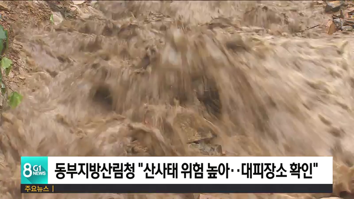 동부지방산림청은 비가 계속돼 산사태 발생 위험이 굉장히 높은 상태라면서 주민들에게 산사태가 났을 때 대피할 수 있는 장소를 미리 확인해 달라고 당부했습니다.