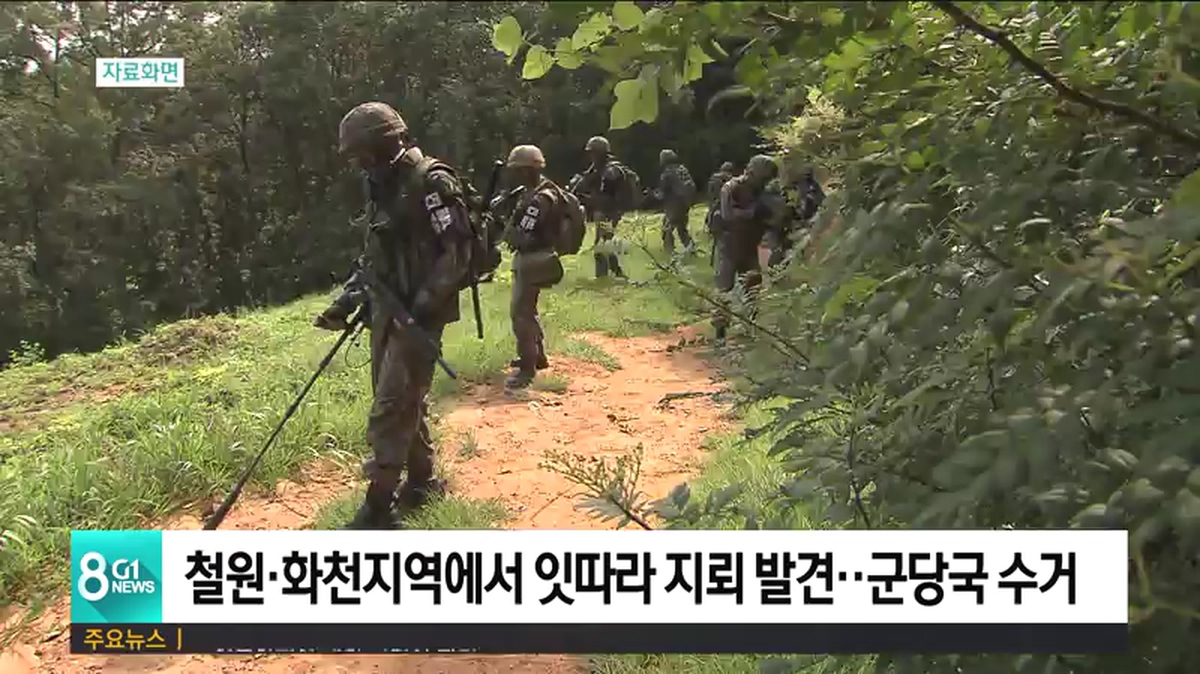 군당국에 따르면, 오늘 철원군 동송읍 이길리 인근 군부대 주변에서 M14 대인지뢰 두발을 발견해 수거하고 병력 300여 명을 투입해 지뢰탐색 작전을 벌이고 있습니다.