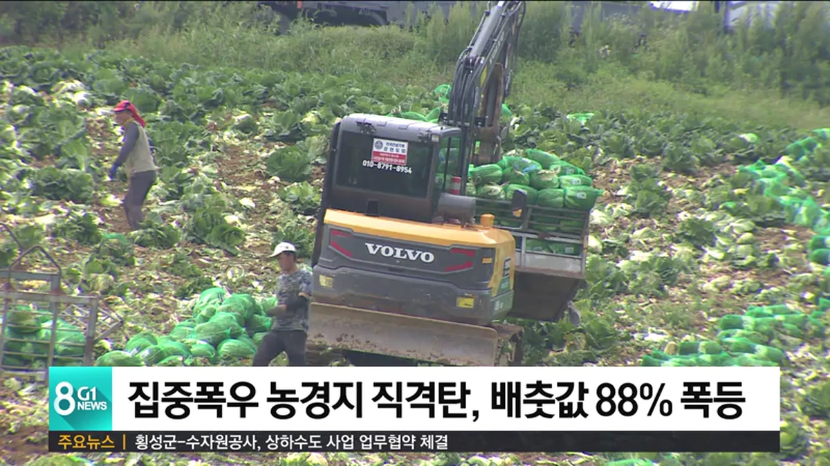 집중폭우 농경지 직격탄, 배춧값 88% 폭등