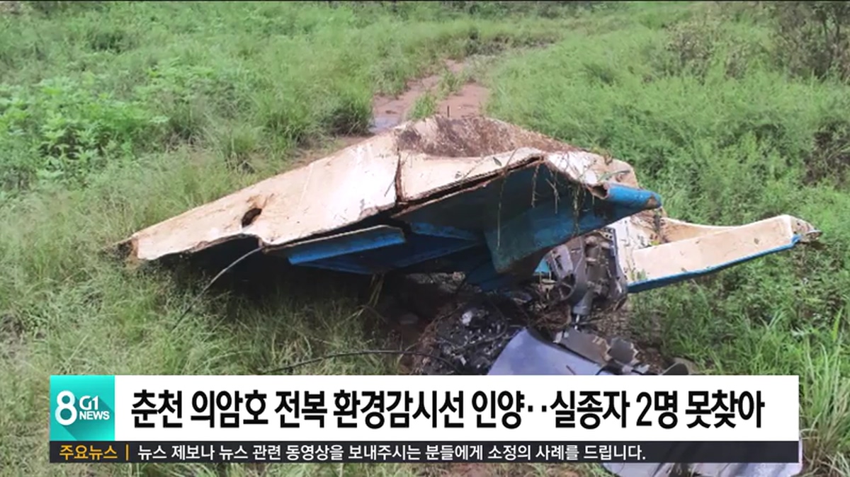 의암호 사고대책수습본부는 어제(15일) 오후, 사고 지점에서 12km 떨어진 춘천시 남산면 서천리 인근에서 환경감시선이 발견돼, 오늘 오전 인양 작업을 벌였다고 밝혔습니다.