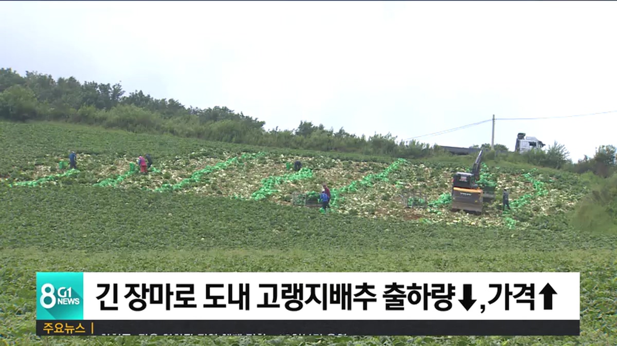 긴 장마로 도내 고랭지배추 출하량↓,가격↑