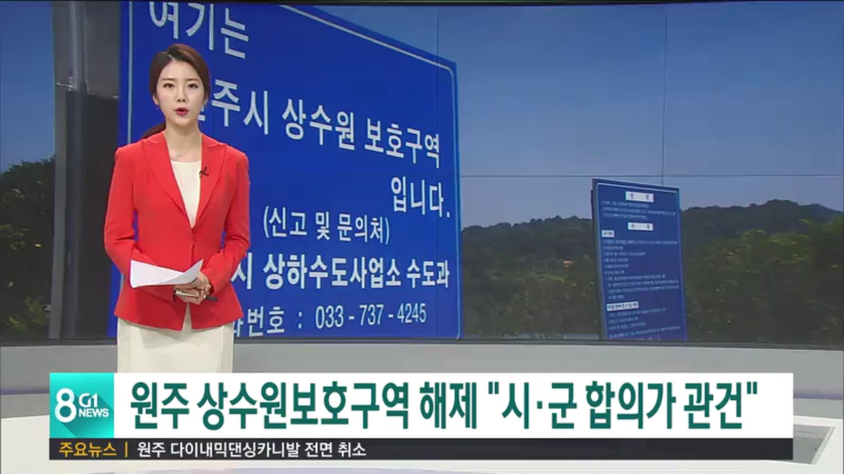 원주 상수원보호구역 해제 "시.군 합의가 관건"