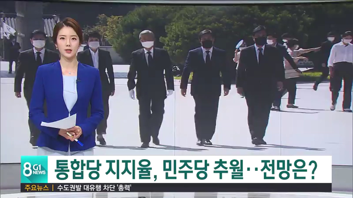 통합당은 지지율 역전에 대해 "민주당 실수 덕"이라며 자세를 낮췄고, 김종인 비대위원장이 5.18 민주 묘지를 찾아 무릎 꿇고 사과하는 등 호남과 중도층을 끌어안기 위한 행보를 이어가고 있습니다.